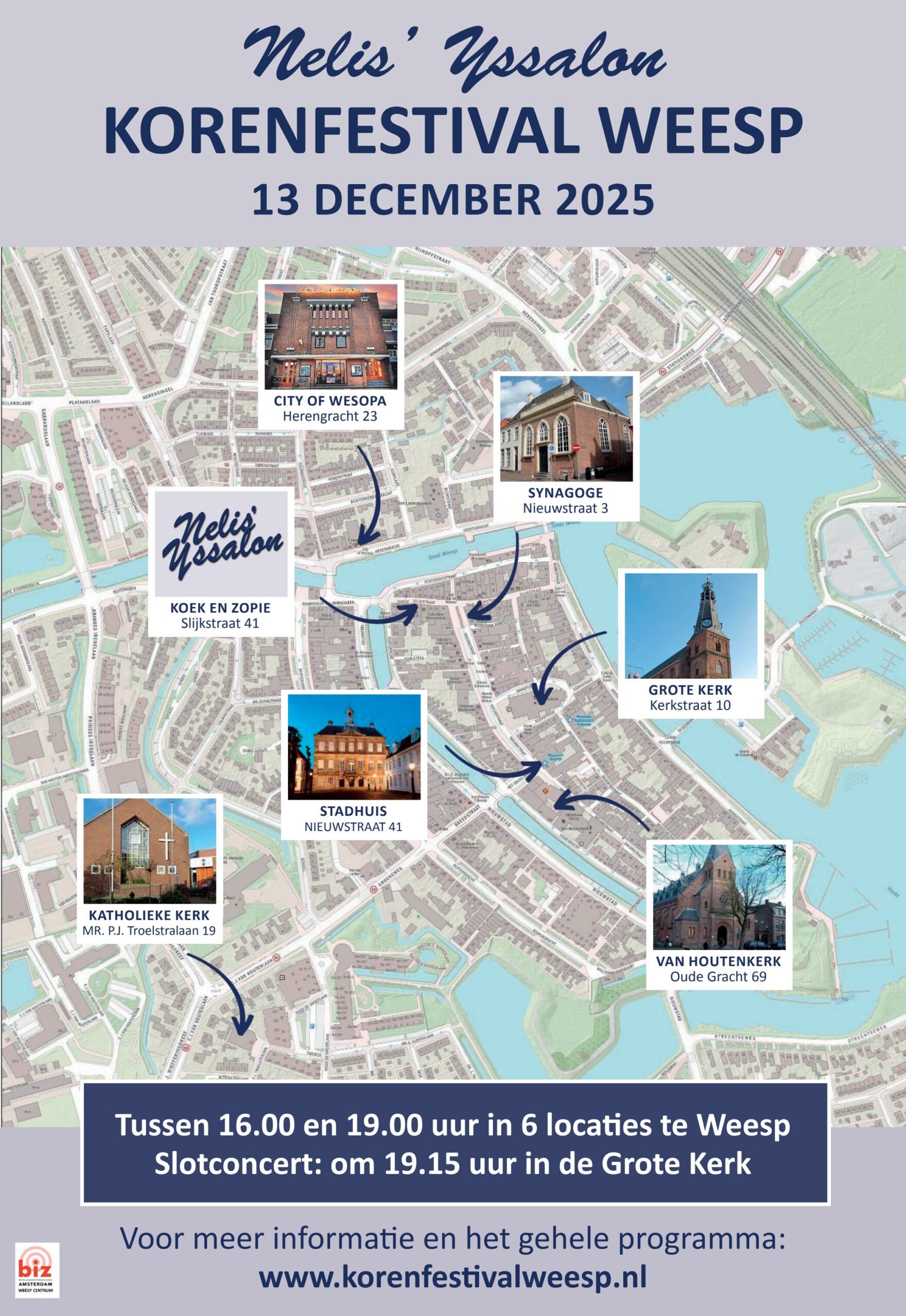 Dit zijn de koren die zaterdag 13 december 2025 optreden tijdens de 24e editie van het Weesper Korenfestival.